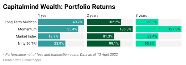 Some of the gains we had last year were booked profits. The realisation of these profits mean that you will have to pay tax on them. One of the ways that Capitalmind has been innovating is decreasing the impact of these taxes, by using a tax-loss-harvesting technique. We do this in the Long Term Multicap portfolio.