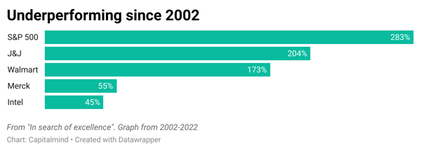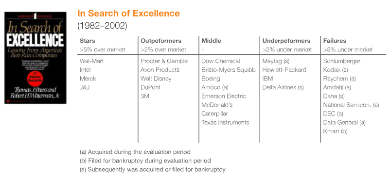 McKinsey did us all a favour and analysed, in 2002, what these excellent companies were up to. Twenty years later, they were apparently not up to excellence.