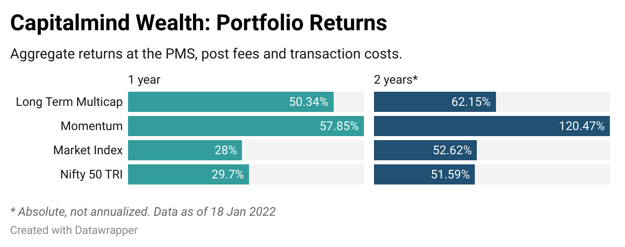 Our focus is to work to build an edge: whether it’s momentum (discipline and rules), market index (just the top market-cap stocks in India+US) or long term multicap (growth and disruption). These edges, we believe, will work over time, but it would be folly to imagine that the last one year - powered partly by the Fed, the ECB and the RBI - is a testament to our skill. It isn’t evident how much skill there is, and our belief is it’s in there, and will take time to unravel. Like the puzzles earlier, what seems like a game of chance will, we hope, prove not to be. We hope to live by the saying: The harder I work, the luckier I get.